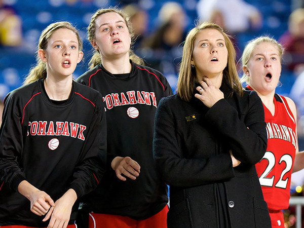 While shooting a day of the Washington State 4A tournament this week, I really noticed how dogged most photographers were in their pursuit of the ball. For example, I often try to “shoot through” a play — keeping the shutter depressed in a burst even after a basket is made or a foul committed — because there are reactions and even consequences such as hair pulling, stomping and rabbit punches (not all sugar and spice, this sport of girls’ basketball). This is my photographic equivalent of following through. All of the guys shooting around me stopped when the action did. I wondered why they stopped, and they probably wondered why I did not.
