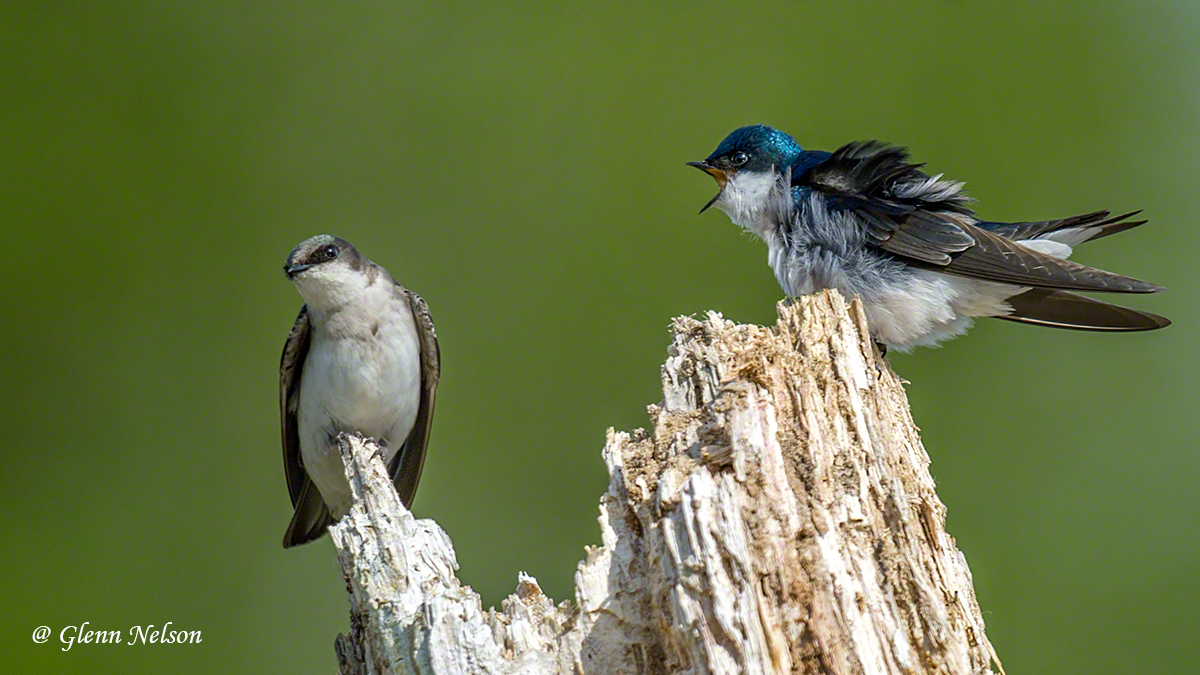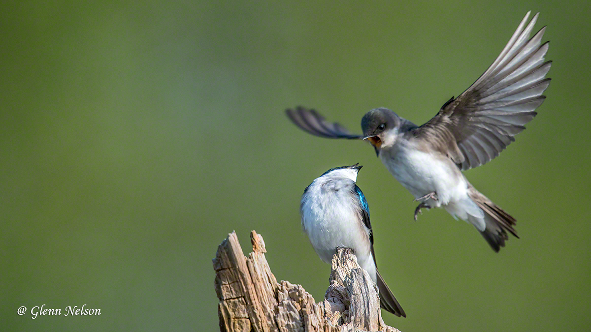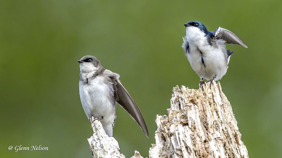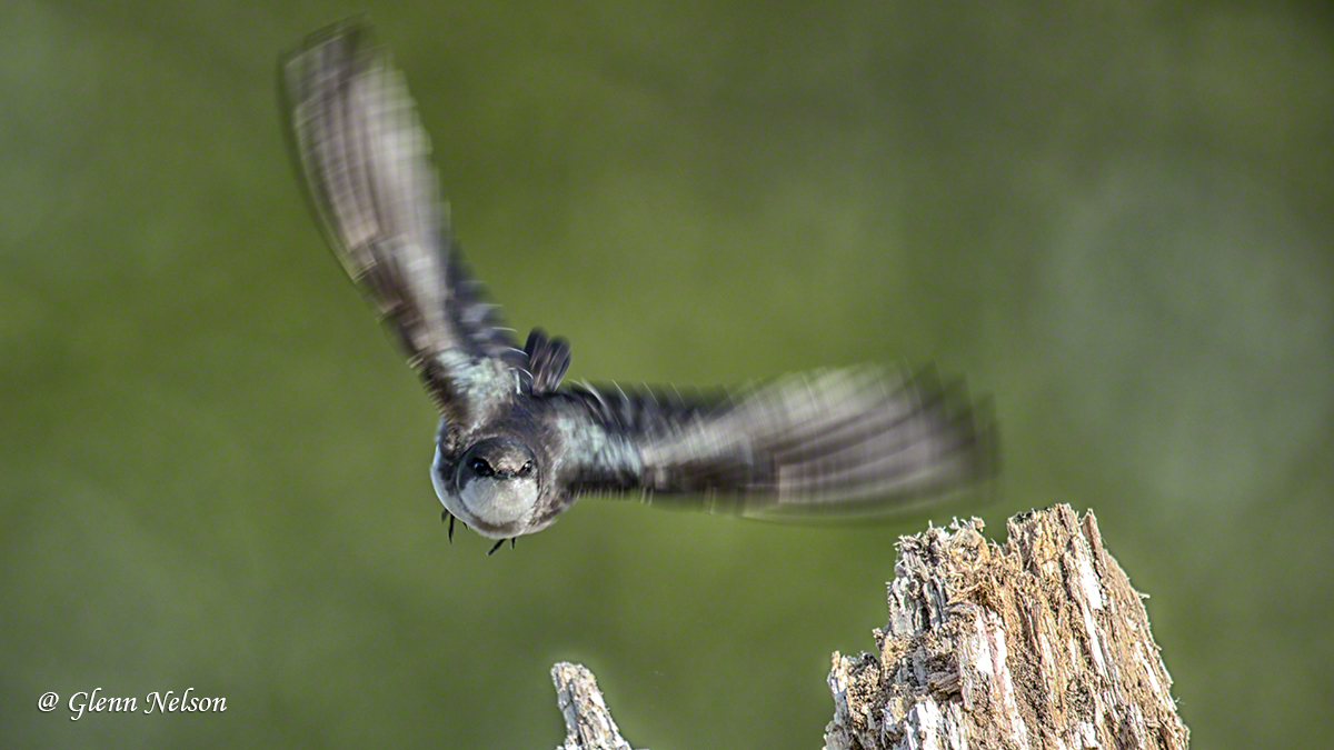 At Spencer Island, an estuary in Everett, Wash., about 20 miles north of Seattle, I walked in, looking as usual for raptors. I eventually did spy an Osprey, but after being distracted for 2 1/2 hours by Tree Swallows. I usually take these birds for granted because they’re using flitting around at warp speed, chasing down insects. However, in a patch of the reserve, they were landing on snags.
