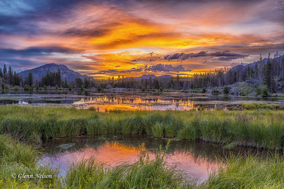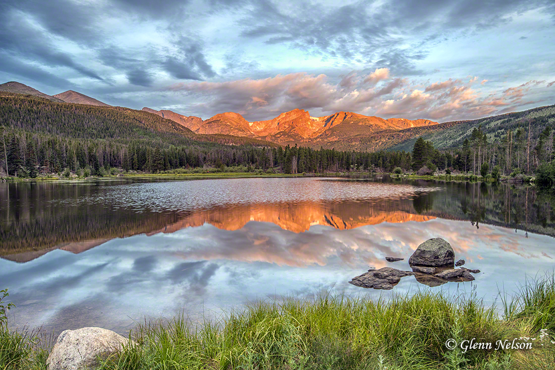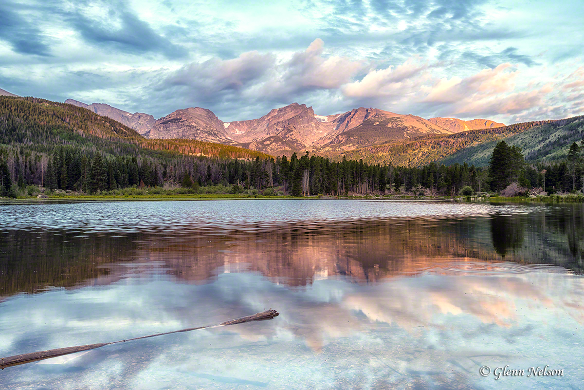 Notice how luck played into these last three at Sprague Lake, especially the first two? I got clouds, which are not ever-present in the Rockies like they are in the Pacific Northwest, where I live. Clouds give the light something to reflect off, thereby giving us the great oranges and pinks.