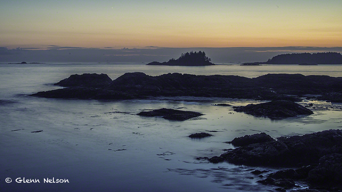 Florangela and I had a wonderful dinner at The Pointe restaurant in the Wickaninnish Inn and had lingered over dessert and the superb views. When we got back to our (stunning) room, the most magnificent sunset of our stay was taking place. Instead of racing down to the beach, I set up on our balcony and caught the sunset after-party. The result (see lead photo) wasn’t great, but it was OK — more satisfying than Radar Hill, for which I had much bigger expectations.