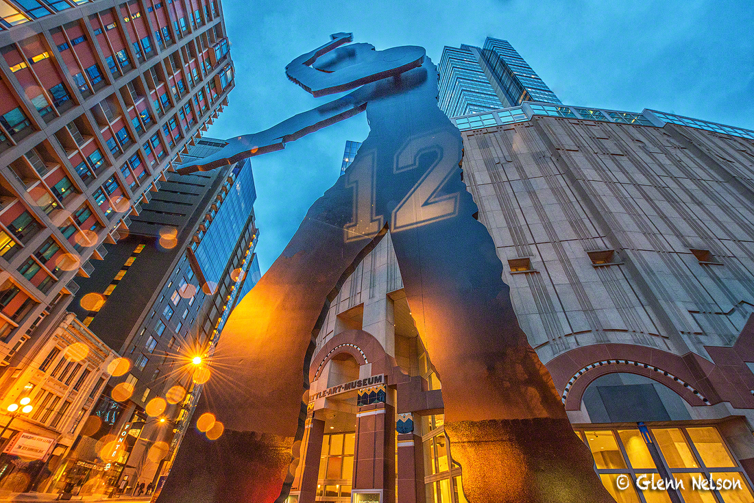My wife Florangela got the brilliant idea that I ought to photograph various ways that Seattle was showing its Seahawk colors in advance of Saturday’s division playoff game here against the New Orleans Saints. I had planned on staying warm and dry, but the idea grew on me. So I’m presenting the images a couple ways – via slideshow above and individually below (so they can be viewed a little larger).