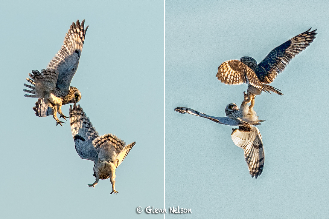 I’ve spent a bunch of time in recent weeks watching the Short-Eareds at a spot known to birders as “West 90,” a 409-acre unit along Samish Island Road that is managed by the Washington Department of Fish and Wildlife. I know there are usually four that hunt the area. One or two are out in the early morning, but all four usually are active after 3 p.m. or so. I know their favorite perches and the quadrants each has picked out. Sometimes the quadrants intersect, leading to scenes like that pictured.