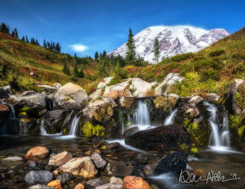 OCTOBER: Mount Rainier looms over Edith Creek on a gorgeous fall day in Mount Rainier National Park.